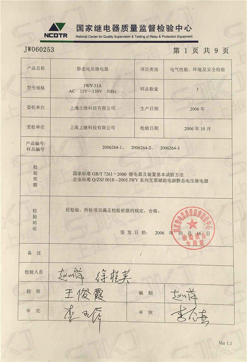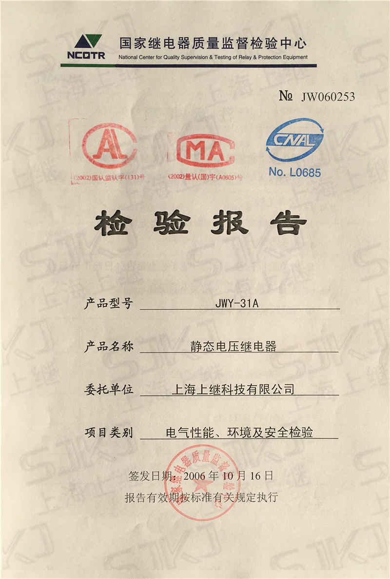 您現在的位置: 首頁 >> 客戶服務 >> 資質證書 > JWY-31A檢驗報告