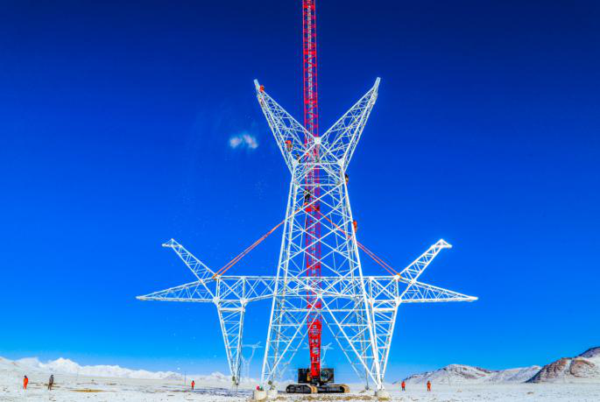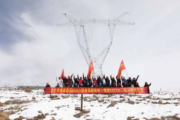 5月2日,在海拔5357米的西藏日喀則拉孜縣與定日縣交界處的嘉措拉山,阿里聯網工程4R053號500千伏輸電鐵塔成功組立,刷新了我國在世界超高壓電網建設領域的新紀錄(藏中電力聯網工程**海拔5259米)。