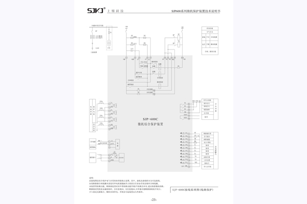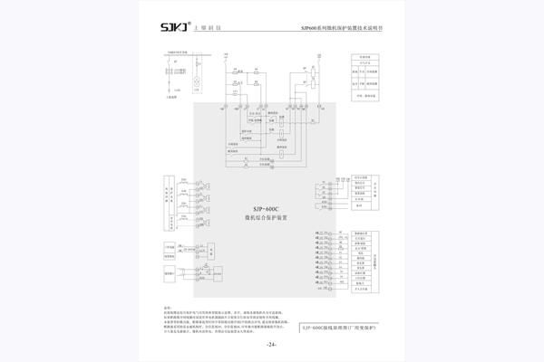 三、SJP-600C微機綜合保護裝置接線原理圖
