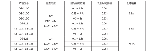 DS-111C時間繼電器用于各種保護和自動控制線路中,使被控制元件的動作得到可調延時。繼電器具有一付瞬時轉換觸點和一付延時動合主觸點,對于DS-114、115、116、124、125、126型繼電器多一付延時滑動主觸點。型號末端帶“C”型屬長期工作,其線圈能長期耐受110%額定電壓(電壓應加在端子①、⑦上) ,其它型的繼電器線圈耐受110%額定電壓歷時2min。