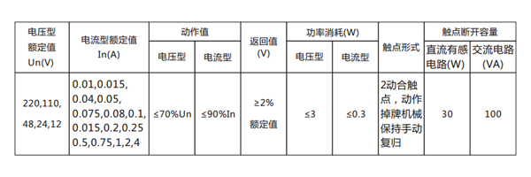 ●工作繞組額定值:220V、110V、48V、24V、0.0lA、0.015A、0.025A、0.05A、0.075A、0.1A、0.15A、0.25A、0.5A、 0.75A、lA、2A、4A。