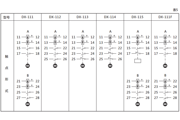 五、DX-111F信號繼電器的觸點規格