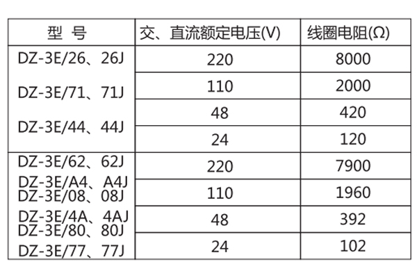 額定電壓:AC220V、110V、48V、24V;DC220V、110V、48V、24V。