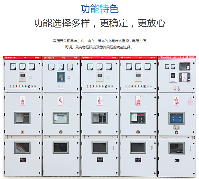 高壓開關柜的特點有:具備保護功能的接地金屬外殼,安全的操作程序并且機械和電氣都設有五防聯鎖功能,擁有兩套工作電路解決方案,具有壓制內部故障效果的功能.